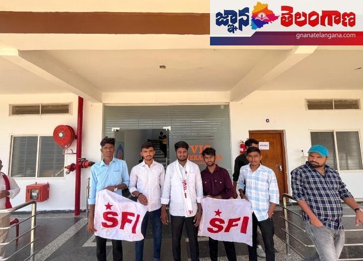 అడ్డుకున్న ఎస్ఎఫ్ఐ నాయకులపై దురుసుగా వ్యవహరించిన యాజమాన్యం