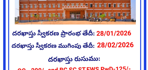 అర్హతలు: SSC కి ఏదైనా స్టడీ సర్టిఫికెట్, ఇంటర్మీడియట్ కి SSC పూర్తి అయి ఉండాలి.
