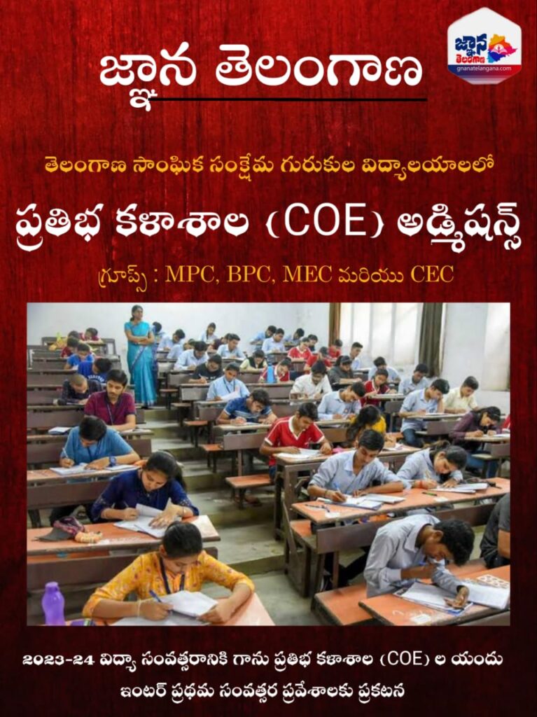 2023-24 విద్యా సంవత్సరానికి గాను ప్రతిభ కళాశాల (COE) ల యందు ఇంటర్ ప్రథమ సంవత్సర ప్రవేశాలకు ప్రకటన