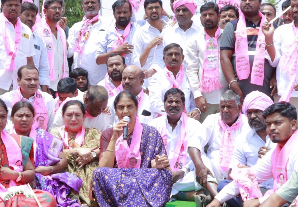తెలంగాణ రాష్ట్ర రైతాంగాన్ని మరోసారి మోసం చేసిన రాష్ట్ర ప్రభుత్వ రైతు వ్యతిరేక చర్యలకు నిరసనగా మాజీ ముఖ్యమంత్రి కేసీఆర్ పిలుపు మేరకు గురువారం నాడు మహేశ్వరం నియోజకవర్గం శ్రీశైలం జాతీయ రహదారిపై బారీ ఎత్తున ధర్నా కార్యక్రమం నిర్వహించారు. ధర్నా కార్యక్రమానికి ముఖ్య అతిథిగా మాజీ మంత్రి సబితా ఇంద్రారెడ్డి పాల్గొన్నారు. ఈ సందర్భంగా మాజీ మంత్రి సబితమ్మ మాట్లాడుతూ రైతులకు 500 బోనస్ ఇచ్చి ధాన్యం కొనుగోలు చేయాలని తెలంగాణ ప్రభుత్వాన్ని డిమాండ్ చేశారు. మాట ఇచ్చినా రేవంత్ రెడ్డి ఎందుకు అమలు చేయడం లేదని ప్రశ్నించారు. రైతుల పట్ల కాంగ్రెస్ పార్టీ చిన్న చూపు చూస్తుందని సబితమ్మ విమర్శించారు. రైతుల ఇబ్బందులు కాంగ్రెస్ ప్రభుత్వానికి పట్టదా అని ప్రశ్నించారు. బిఆర్ఎస్ పార్టీ రైతు సంక్షేమానికి రైతుల కోసం పెద్ద ఎత్తున పోరాటం చేస్తామని ధాన్యం కొనుగోలు చేసే వరకు టిఆర్ఎస్ పార్టీ రైతులకు అండగా ఉంటుందని సబితమ్మ అన్నారు. పార్లమెంటు ఎన్నికలు ముగిసిన తెల్లారే వరి ధాన్యానికి క్వింటాలుకు 500 రూపాయల బోనస్ చెల్లిస్తానని ప్రకటించిన కాంగ్రెస్ ప్రభుత్వం, ముఖ్యమంత్రి.. ఇప్పుడు సన్న వడ్ల కు మాత్రమే బోనస్ ఇస్తామనడం రాష్ట్ర రైతాంగాన్ని మరోసారి వంచించడం, మోసం చేయడం, దగా చేయడమేనని సబితా ఇంద్రారెడ్డి పేర్కొన్నారు.