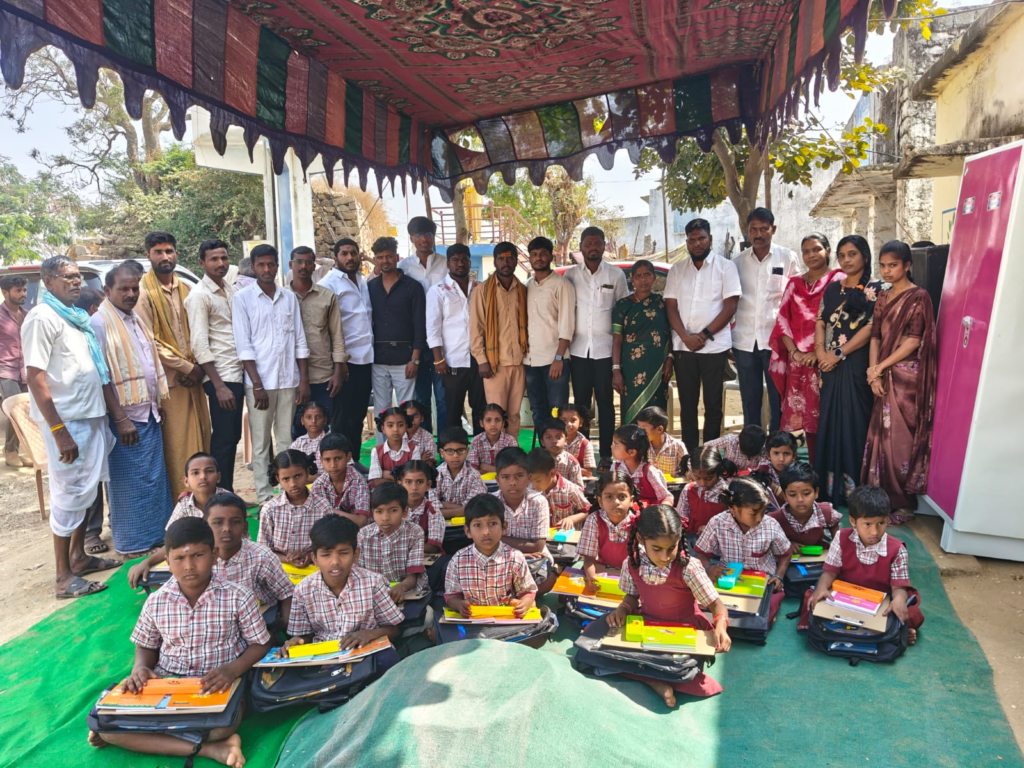 ఇటీవల జరిగిన ఎన్నికల్లో గెలిచి భైరంపల్లి డిప్యూటీ సర్పంచ్ గా బాధ్యతలు తీసుకున్న కుంటోళ్ల నరేష్ అనే తన స్నేహితుడి కోరిక మేరకు పాఠశాల విద్యార్థులకి స్కూల్ బాగ్స్ బుక్స్ మరియు స్టేషనరీ ఐటమ్స్ అలాగే బీరువా అందజేశారు. గుర్రంపల్లి భాను యాదవ్ మరియు ఈశ్వర్ ముదిరాజ్ మాట్లాడుతూ మా స్నేహితుని ఎదుగుదల మేము కోరుకుంటాం ఇంకా ఉన్నతమైన ఓధలో వుండాలి అని కోరుకుంటున్నాం కార్యక్రమాలు మీ పాఠశాలలో మా జి ఎస్ ఆర్ డొనేషన్ ద్వారా చేస్తాము అని హామీ ఇవ్వడం జరిగింది. డిప్యూటీ సర్పంచ్ కుంటోళ్ల నరేష్ మాట్లాడుతూ నా కోరిక మన్నించి ఇంత గొప్ప పని చేసిన తన స్నేహితులకి ధన్యవాదములు తెలిపారు మీ లాంటి మంచి మిత్రులు నాకు ఉండటం ఏ జన్మలో చేసుకున్న పుణ్యమో అంటూ అభినందించారు. స్కూల్ టీచర్స్ మీనా మరియు జ్యోతిర్మయి కూడా ధన్యవాదములు తెలిపారు విద్యార్థులు భాను యాదవ్ ఈశ్వర్ ముదిరాజ్ మరియు డిప్యూటీ సర్పంచ్ కి కృతజ్ఞతలు తెలిపారు.ఈ కార్యక్రమం లో ప్రస్తుత సర్పంచ్ పెద్దింటి జంగమ్మ మాజీ సర్పంచ్ ఎర్ర ఆంజనేయులు,కంటే మల్లేష్ 3వ వార్డు సభ్యులు,ఎండి జహంగీర్ 6వ వార్డు సభ్యులు, గ్రామ యువకులు ఎండి ఫక్రుద్దీన్ ,గుడిసె సాయి కుమార్, నాగులపల్లి రవీందర్,నాగుల పల్లి నర్సిములు, కుంటోళ్ల గోపాల్, బోడ రమేష్,ఎర్ర మహేష్, కంటే రాఘవేందర్, పిరంగి భూపాల్, గడ్డమిది కుమార్, గూడెం మహేష్,గడ్డమిది ప్రశాంత్,చిన్నకుర్వ వంశీ, చిన్నకుర్వ శివకుమార్,పెద్దింటి నరేష్, విజయ్ ఈ కార్యక్రమంలో పాల్గొన్నారు