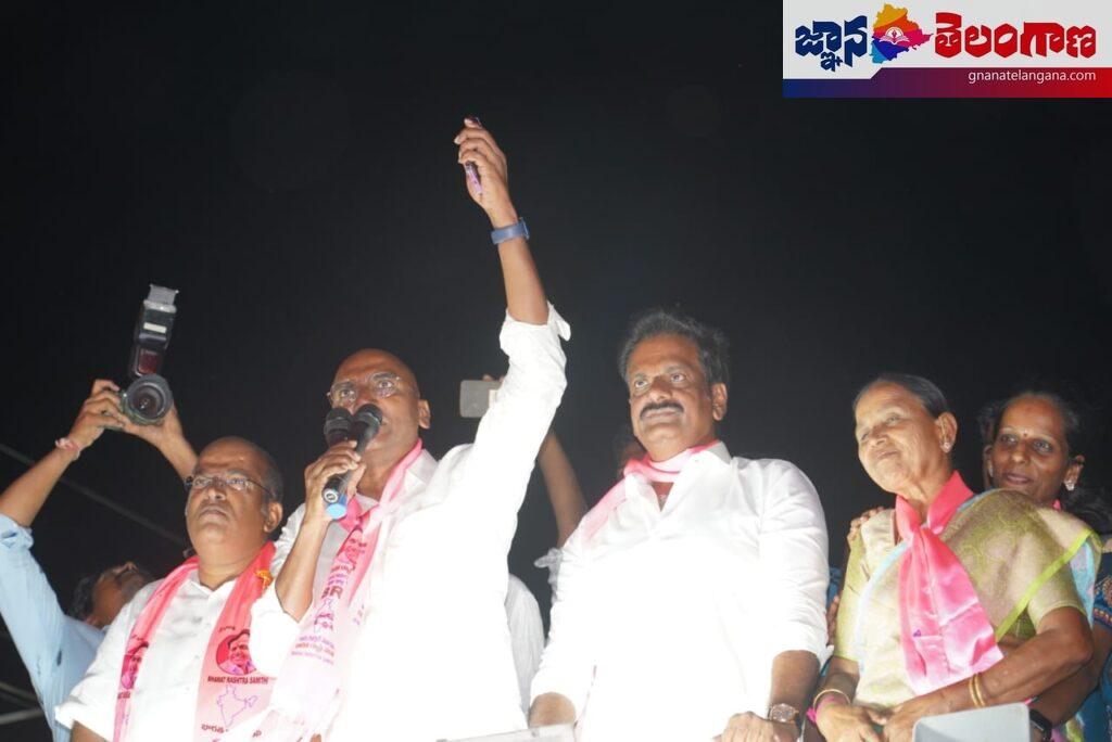అధికార కాంగ్రెస్ ఎమ్మెల్యేలు పోలీసు పహారా లేకుండా ప్రజల్లోకి రావడం లేదన్నారు.ఇప్పుడు జరిగే ఎన్నికలు కేసీఆర్ పదేళ్ల నిజమైన పాలనకు,అబద్ధపు హామీలిచ్చిన కాంగ్రెస్ పాలనకు మధ్య జరుగుతున్నాయని అన్నారు. తనను ఎంపీగా గెలిపిస్తే కేంద్రం నుంచి రాష్ట్రానికి రావలసిన నిధులు తీసుకువచ్చి ఈ ప్రాంతాన్ని అన్ని రంగాల్లో అభివృద్ధి చేస్తానని హామీ ఇచ్చారు.