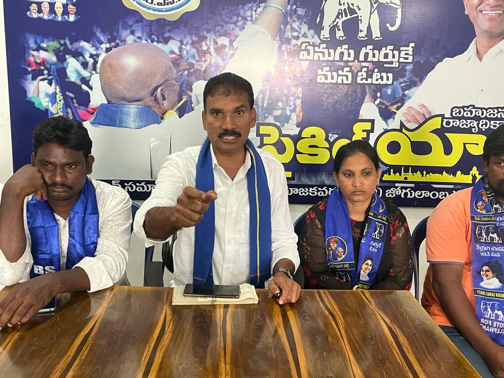 ఉండవెల్లి (అలంపూర్ చౌరస్తా) : బహిరంగ సభల పేరుతో పాఠశాలలు బందు చేసి స్కూల్ బస్సులను బహిరంగ సభలకు తరలిస్తున్న దుస్థితి అలంపూర్ నియోజకవర్గం లో ఉందని,పిల్లలు స్కూల్స్ బంద్ చేయడం ఎంతో దుర్మార్గమని ఈరోజు అలంపూర్ చౌరస్తా బహుజన్ సమాజ్ పార్టీ కార్యాలయంలో ప్రెస్ నోట్ నిర్వహించి మాట్లాడారు.