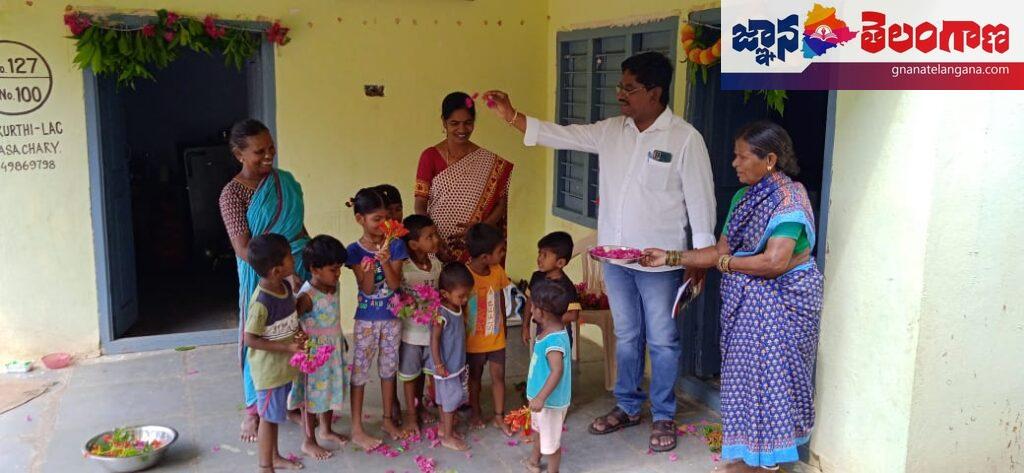 అంగన్ వాడి సెంటర్లలో అక్షరాభ్యాసం కోసం ఆశీర్వదించిన జిపి కార్యదర్శి గంటా శ్రీనివాస్