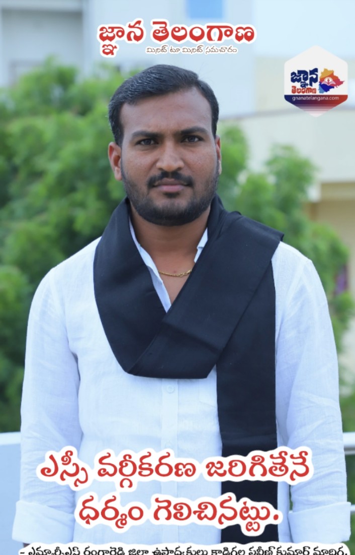 – ఎమ్మార్పీఎస్ రంగారెడ్డి జిల్లా ఉపాధ్యక్షులు కాడిగల్ల ప్రవీణ్ కుమార్ మాదిగ.