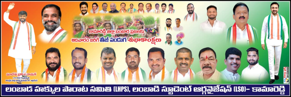 కామారెడ్డి జిల్లా బంజారా ప్రజలకు తెలియజేయునది రేపు ఆదివారం రోజున జరిగే ప్రతి సంవత్సరం అలాగే ఈ 2025 లో కూడా తీజ్ పండుగకు లంబాడి అన్నదమ్ములకు, అక్క చెల్లెలకు భారీ సంఖ్యలో పాల్గొనాలని కోరుకుంటున్నాను, *మీ మాలోత్ ప్రకాష్ నాయక్ & కాంగ్రెస్ పార్టీ సోషల్ మీడియా కోఆర్డినేటర్, లంబాడి స్టూడెంట్ ఆర్గనైజేషన్ (LSO) జిల్లా అధ్యక్షుడు తెలియచేసారు.