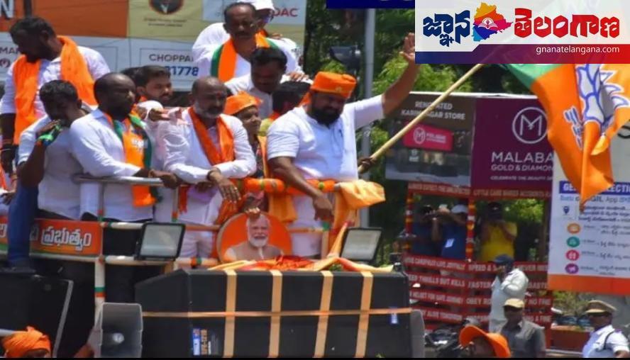 కరీంనగర్ లో బిజెపి అభ్యర్థి సిట్టింగ్ ఎంపీ బండి సంజయ్ కు మద్దతుగా శనివారం నిర్వహించిన బైక్ ర్యాలీలో ఎమ్మెల్యే రాజాసింగ్ పాల్గొన్నారు. కరీంనగర్ పార్లమెంట్లో బండి సంజయ్ భారీ మెజారిటీతో గెలవబోతున్నారని పేర్కొన్నారు. అదేవిధంగా దేశంలో భారతీయ జనతా పార్టీ అధికారం చేపట్టడంపక్కా అని అన్నారు.