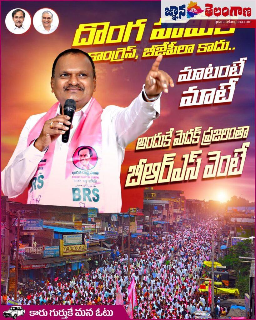 లోక్ సభ ఎన్నికల ప్రచారంలో భాగంగా బిఆర్ఎస్ పార్టీ మెదక్ అభ్యర్థి వెంకటరామిరెడ్డికి మద్దతుగా మే 8వ తేదీ సాయంత్రం 6 గంటల నుండి 9 గంటల వరకు నియోజకవర్గ కేంద్రమైన పటాన్చెరు పట్టణంలోని డాక్టర్ బి.ఆర్ అంబేద్కర్ సర్కిల్ వద్ద