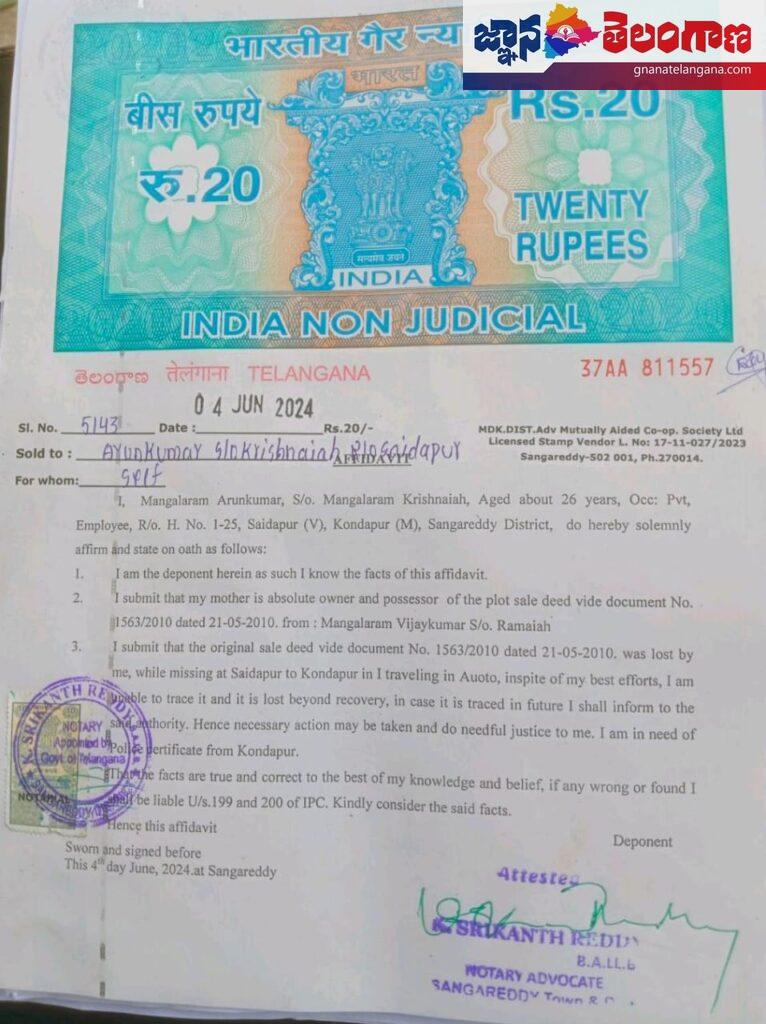 I Mangalaram Arun kumar, s/o. Mangalaram krishnaiah , aged about 26 years, occ:private employee, R/0. H. No. 1-25, (v)Saidapur, (M)Kondapur, (dist )Sangareddy, (state )Telangana.