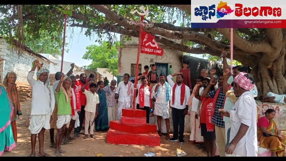 జ్ఞాన తెలంగాణ నారాయణపేట టౌన్ ,మే 1: నారాయణపేట జిల్లా దామరగిద్ద మండల కేంద్రంలో,సిపిఐ(ఎంఎల్)మాస్ లైన్ ఐఎఫ్టియు ఆధ్వర్యంలో కాన్ కుర్తి,ఉడ్మల్ గిద్ద గ్రామాలలో 138వ మే డే సందర్భంగా జెండా ఆవిష్కరించడం జరిగింది.*ఈ సందర్భంగా వారు మాట్లాడుతూ ఎల్ఐసి, రైల్వే,రిలయన్స్ అనేక ప్రభుత్వ సంస్థలను ప్రైవేటు వారికి కట్టబెట్టారు.బ్యాంకుల నుండి రుణాలు పొందిన వాటిని రద్దు చేయడం లాంటి చర్యల ఫలితంగానే ప్రభుత్వ సహాయంతో అనేక టెండర్లను చేజిక్కించుకోవడం వల్ల అదానీ, అంబానీలు ఎదిగిపోయారు. మోడీ అధికారం కొచ్చిన ఈ 10 ఏండ్ల కాలంలోనే 10 లక్షల కోట్ల (నాన్ ప్రొఫెర్మెంట్స్ అసెస్ట్స్) నిరర్థక ఆస్తులు బ్యాంక్ ఖాతా నుండి ఎత్తి వేశారు. సామాన్యుల రుణాల వసూళ్ళను చుక్కలు చూయించే బ్యాంకులు, పారిశ్రామికవేత్తల రుణాల రద్దుకు మోడీ ఒక్క కలం పోటుతో కోటానుకోట్ల రూపాయలను మిగిల్చారు.