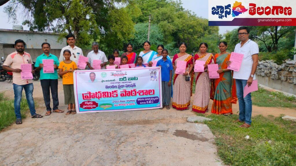 జ్ఞాన తెలంగాణ కొడకండ్ల తేదీ 08-06-2024 ఈరోజు కొడకండ్ల మండల కేంద్ర లోని ప్రాథమిక పాఠశాల హరిజన కాలనీ స్కూల్లో బడిబాట కార్యక్రమాన్ని నిర్వహించిన స్కూల్ ప్రధానోపాధ్యాయులు డి ప్రభాకర్. ఈ కార్యక్రమంలో ప్రభుత్వ పాఠశాలలో ఉన్నటువంటి వసతులను సమీప కాలనీలోని తల్లిదండ్రులకు పెద్దలకు మరియు ఇతరులకు తెలియజేయడం జరిగింది. ప్రభుత్వ పాఠశాలలో చదువుకుంటే ఎట్లా ఉంటది అలాగే ప్రైవేటు పాఠశాలలో చదువుకుంటే ఏవిధంగా ఉంటది అని రెండిటి మధ్య తేడాను వివరించి చెప్పడం జరిగింది. ప్రభుత్వ పాఠశాలలో ఉపాధ్యాయులు అందరూ శిక్షణ పొందిన వారై ఉంటారు కావున మీ యొక్క మీ యొక్క పిల్లలను ప్రభుత్వ పాఠశాలకు మాత్రమే పంపించవలసినదిగా వివరించడం జరిగింది. ఈనాటి ఈ కార్యక్రమం కి అంగన్వాడీ టీచర్లు, ఆశా వర్కర్లు, స్కూల్ సిబ్బంది మరియు కమిటీ మెంబర్లు పాల్గొని విజయవంతం చేయడం జరిగింది.