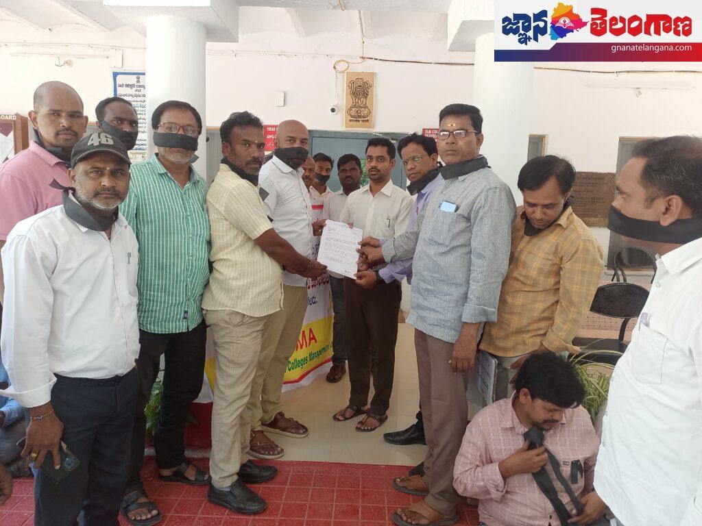 • సబ్ కలెక్టర్ కు వినతిపత్రం అందిస్తున్నప్రయివేటు డిగ్రీ కళాశాలల యూనియన్ నాయకులు.