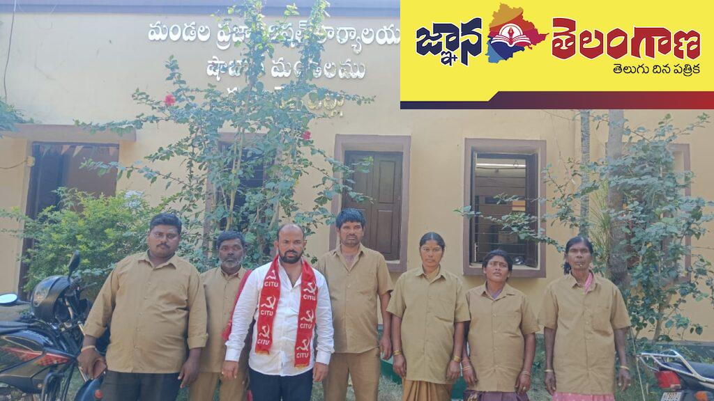 షాబాద్ మండల కేంద్రంలో మండల పరిషత్ కార్యాలయం ముందు సర్దార్ నగర్ గ్రామపంచాయతీ కార్మికులు పంచాయతీ కార్యదర్శి నీ సస్పెండ్ చేయాలని నిరసన తెలియజేశారు. ఈ సందర్భంగా సిఐటియు జిల్లా సహాయ కార్యదర్శి అల్లి దేవేందర్ మాట్లాడుతూ గ్రామపంచాయతీ కార్మికుల వేతనాలు కట్ చేస్తూ వేధింపులకు పాల్పడుతున్న పంచాయతీ కార్యదర్శిని విధుల నుంచి తొలగించాలని తెలంగాణ గ్రామ పంచాయతీ వర్కర్స్ అండ్ ఎంప్లాయిస్ యూనియన్ డిమాండ్ చేస్తుందని అన్నారు.