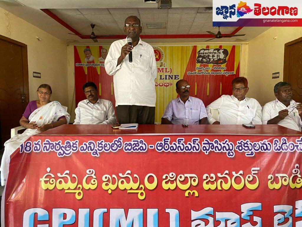 శనివారం ఖమ్మంలో రామ నర్సయ్య విజ్ఞాన కేంద్రంలో రాష్ట్ర కమిటీ కార్యదర్శి వర్గ సభ్యులు కెచ్చెల రంగారెడ్డి అధ్యక్షత ఖమ్మం భద్రాద్రి కొత్తగూడెం జిల్లాల జనరల్ బాడీ జరిగింది. ఈ జనరల్ బాడీ సమావేశానికి పోటు రంగారావు ముఖ్యవక్త గా ప్రసంగిస్తూ భారతదేశ వందల వేల సంవత్సరాల నుండి అన్ని మతాలకు నిలయమైనదని, అంటరాని వారు ముస్లింలలో, క్రిస్టియన్లలో చేరారని, నేడు బిజెపి ఆర్ఎస్ఎస్ సంఘ్ పరివార శక్తులు ఎస్సీ, ఎస్టీ, బీసీ, చరిత్రకారులు, లౌకికవాదులకు వ్యతిరేకమైన చర్యలను చేపట్టి విధ్వంస రచనకు పూనుకున్నదని ఆయన విమర్శించారు.