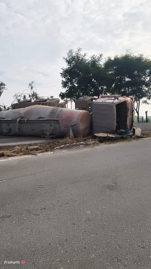 ఈ ఉదయం 6 గంటల సమయంలో, సిమెంట్ లోడుతో వెళ్తున్న లారీ ఎల్వర్తి మలుపు వద్ద అదుపుతప్పి పక్కకు ఒరిగిపోయింది. మలుపు యొక్క తీవ్రత ఎక్కువగా ఉండటం, లారీ వేగాన్ని నియంత్రించలేకపోవటం వలన ఈ ప్రమాదం జరిగినట్లు తెలుస్తోంది.అదృష్టవశాత్తూ, ఈ ప్రమాదంలో లారీ డ్రైవర్‌కు ఎలాంటి తీవ్ర గాయాలు కాలేదు. ఆయన క్షేమంగా ఉన్నట్లు సమాచారం.సరిగ్గా 10 రోజుల క్రితం కూడా ఇదే మలుపు వద్ద ఒక లారీ బోల్తా పడిన విషయం తెలిసిందే. ఈ ప్రాంతంలో తరచూ ప్రమాదాలు జరుగుతుండటంతో గ్రామస్థులు ఆందోళన వ్యక్తం చేస్తున్నారు.పలుచోట్ల ఎక్కువ మలుపులు ఉండటం వల్లే ఇక్కడ ప్రమాదాలు ఎక్కువ జరుగుతున్నాయని గ్రామస్థులు ఆవేదన వ్యక్తం చేస్తున్నారు. తరచూ లారీలు బోల్తా పడటం వల్ల రోడ్డుపై ట్రాఫిక్‌కు తీవ్ర అంతరాయం ఏర్పడుతోంది. దీంతో అత్యవసర పనులు, రాకపోకలకు గ్రామస్థులు తీవ్ర ఇబ్బందులు ఎదుర్కొంటున్నారు.ఈ ప్రమాదాల నివారణకు అధికారులు తక్షణ చర్యలు తీసుకోవాలని స్థానికులు కోరుతున్నారు. మలుపు వద్ద ప్రమాద హెచ్చరిక బోర్డులు, రాత్రి వేళల్లో కనిపించే రిఫ్లెక్టర్లు ఏర్పాటు చేయాలని, అలాగే రోడ్డు ఇంజనీరింగ్‌ను పరిశీలించి మలుపులను కొంతవరకు తగ్గించే ప్రయత్నం చేయాలని గ్రామస్థులు ప్రభుత్వానికి విజ్ఞప్తి చేస్తున్నారు.