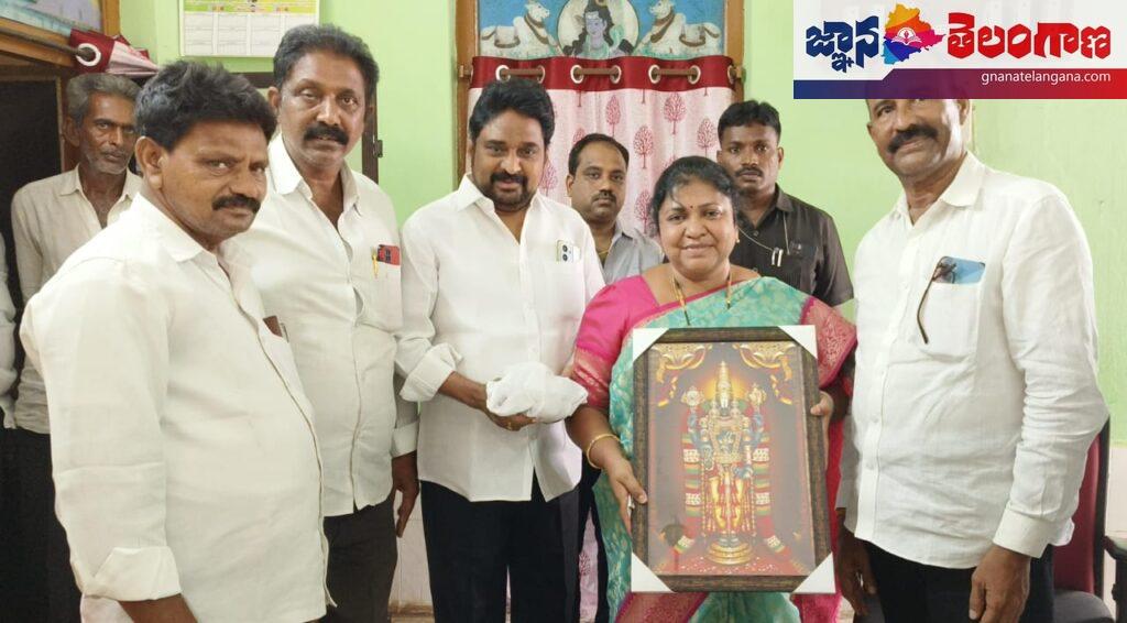 ఎమ్మెల్యే దంపతులకు తిరుపతి దేవస్థానం లడ్డు, ప్రసాదం ,స్వామివారి చిత్రపటం అందజేత :