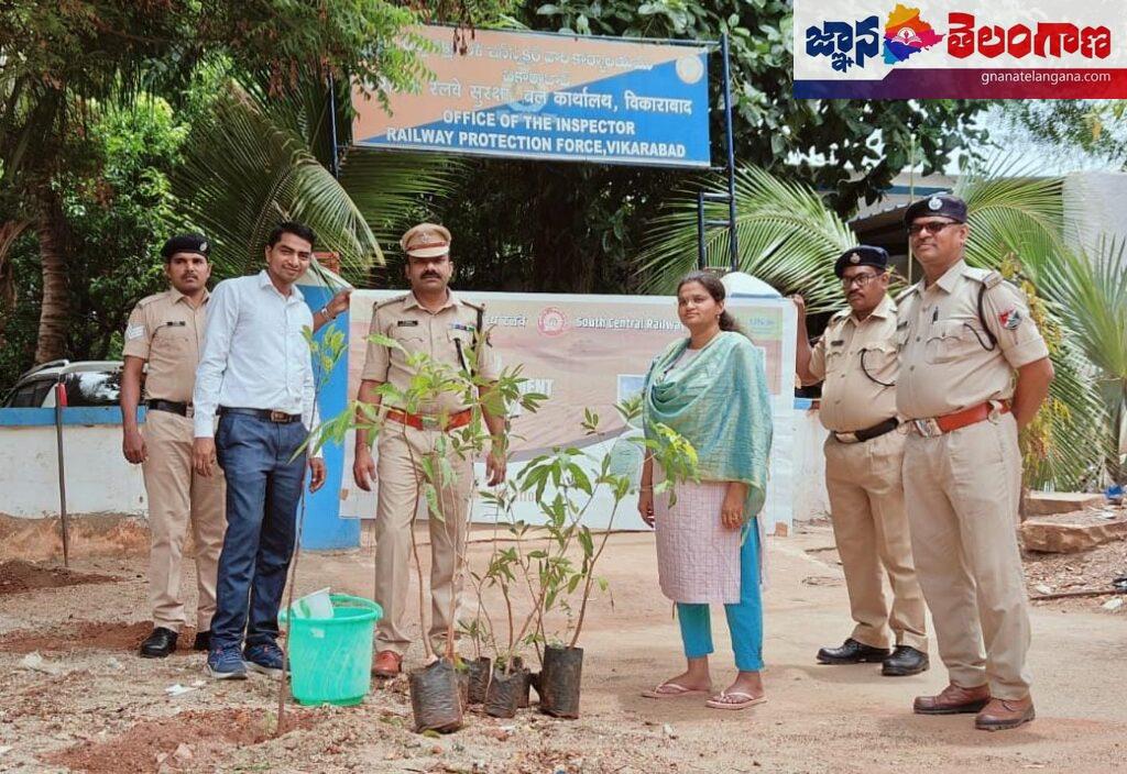 జ్ఞాన తెలంగాణ న్యూస్ వికారాబాద్ జిల్లా ప్రపంచ పర్యావరణ దినోత్సవం సందర్భంగా RPF ఆద్వర్యంలో బుధవారం మొక్కలు నాటే కార్యక్రమం జరిగంది RPF office, రైల్వే హాస్పిటల్ ఇంకా పరిసరాల్లో మామిడి, పనస, నేరేడు, మునగ, సీతఫల తదితర పండ్ల చెట్లను నాటడం జరిగింది.