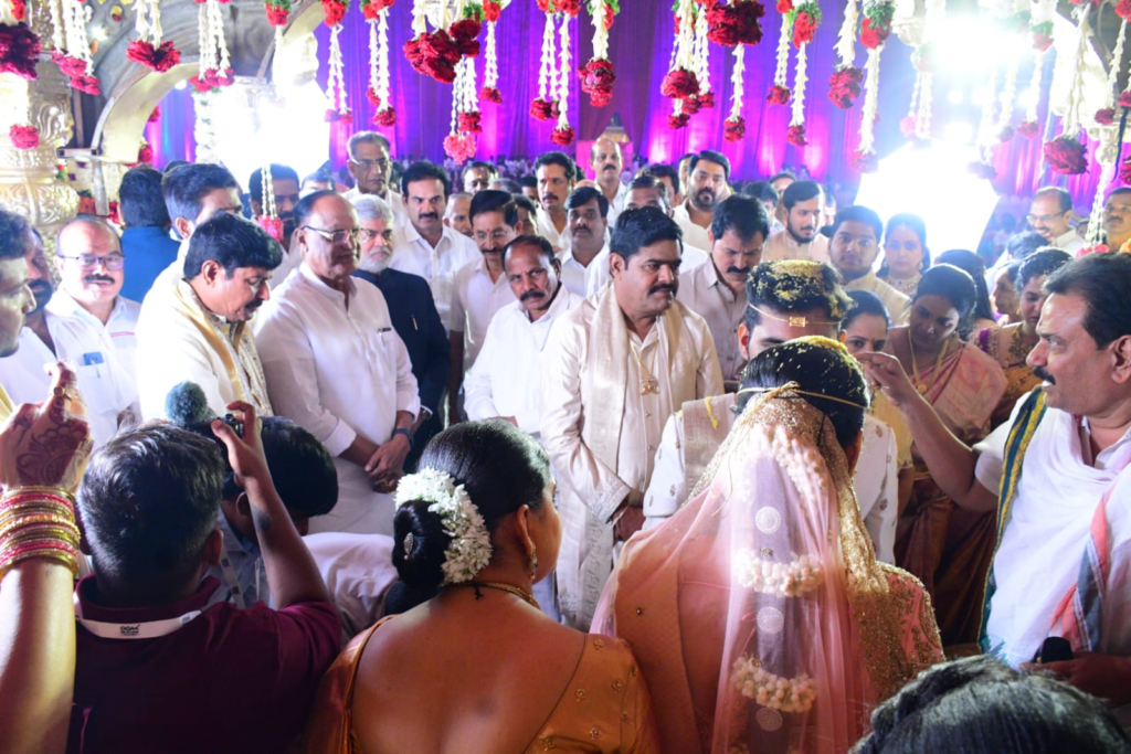శంకర్పల్లి మండలం జన్వాడ గ్రామ సమీపంలోని కె. కన్వెన్షన్ హాల్లో తాండూరు ఎమ్మెల్యే బుయ్యని మనోహర్ రెడ్డి సోదరుడు బుయ్యని శ్రీనివాస్ రెడ్డి కుమారుని వివాహ వేడుక వైభవంగా జరిగింది. ఈ కార్యక్రమానికి రాష్ట్ర రాజకీయ ప్రముఖులు, ప్రజాప్రతినిధులు, సీనియర్ నేతలు హాజరై నూతన వధూవరులను ఆశీర్వదించారు.