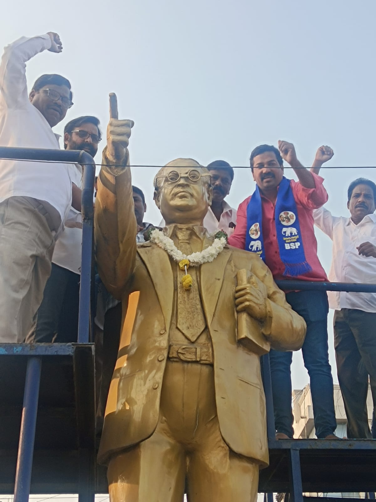 - అంబేద్కర్ విగ్రహానికి పూలమాలలు అర్పించిన బీఎస్పీ నేతలు