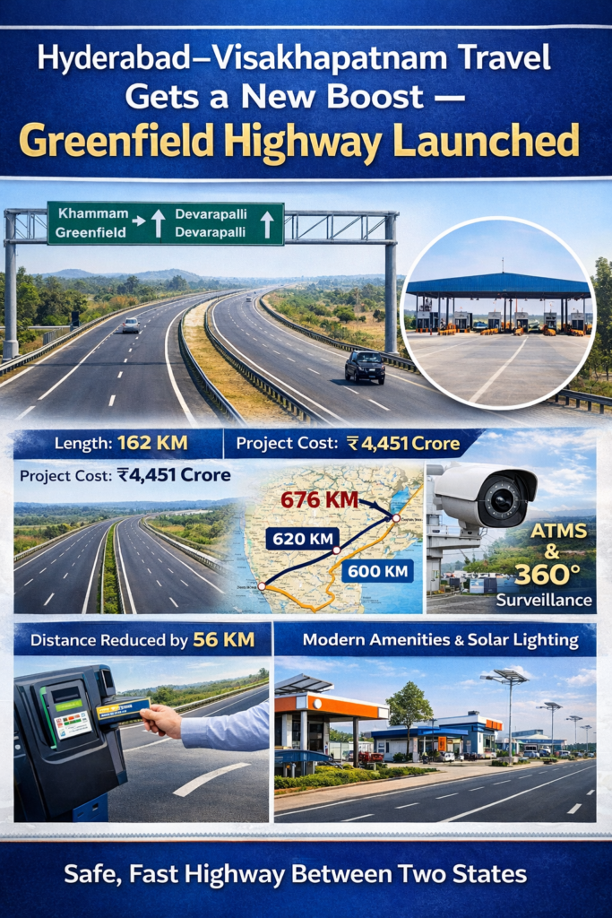- హైదరాబాద్–విశాఖ ప్రయాణానికి కొత్త వేగం- గ్రీన్ఫీల్డ్ హైవే ప్రారంభం