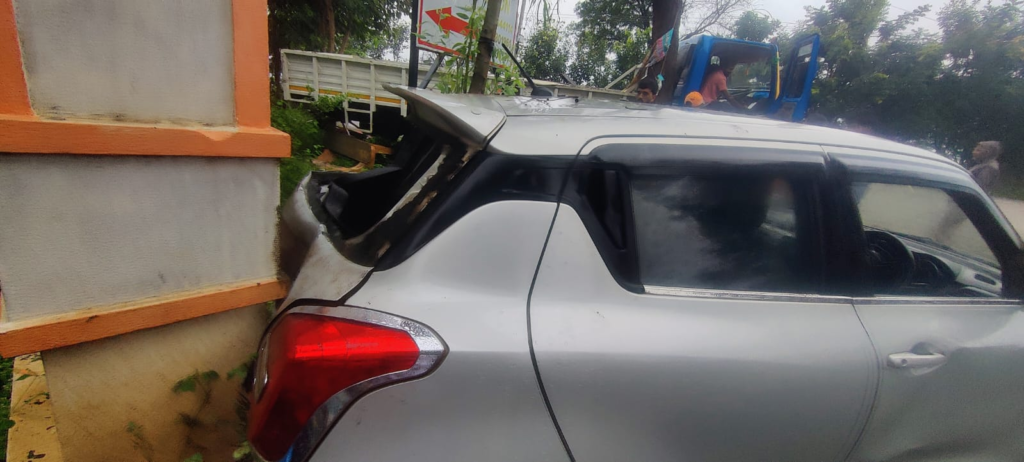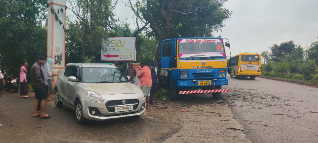 జ్ఞానతెలంగాణ,చేవెళ్ల ప్రతినిధి,అక్టోబర్ 29 : ఈరోజు ఉదయం సుమారు 7.30 గంటల సమయంలో చేవెళ్ల నుండి శంకర్పల్లి వైపు వెళుతున్న డీసీఎం వాహనం దేవుని ఎర్రవల్లి గేటు వద్దకు రాగానే అదుపు తప్పి, దేవుని ఎర్రవల్లి గ్రామానికి వెళ్తున్న షిఫ్ట్ కారును ఢీకొట్టింది. ఢీకొట్టిన ప్రభావంతో షిఫ్ట్ కారు దేవుని ఎర్రవల్లి కమాన్ వద్ద ఉన్న గోడకు గుద్దుకుని పూర్తిగా దెబ్బతింది.అదే సమయంలో, గేటు వద్ద ప్రయాణికులు కూర్చోవడానికి ఏర్పాటు చేసిన సిమెంట్ బెంచీని కూడా డీసీఎం ఢీకొట్టి, ఒక్కసారిగా మళ్లీ చేవెళ్ల వైపు తిరిగి ఆగిపోయింది. సాధారణంగా ప్రతిరోజూ ఆ బెంచీపై విద్యార్థులు, ప్రయాణికులు కూర్చునే వారు. అయితే, ఈరోజు వర్షం కారణంగా అక్కడ ఎవరూ లేకపోవడంతో పెద్ద ప్రమాదం తప్పింది.కారులో ఉన్న వారికి ఎటువంటి గాయాలు కాలేదు. షిఫ్ట్ కారు దేవుని ఎర్రవల్లి గ్రామానికి చెందినదిగా గుర్తించారు. పోలీసులు సంఘటనా స్థలానికి చేరుకొని విచారణ జరుపుతున్నారు.