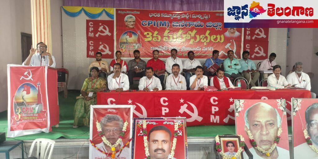 ఘనపూర్ (స్టేషన్)జ్ఞాన తెలంగాణ : ప్రజా పోరాటాల ద్వారానే సమస్యలు పరిష్కారం అవుతాయని కాబట్టి పార్టీ కార్యకర్తలు శ్రేణులు సైనికుల్లా పని చేయాలని సిపిఎం కేంద్ర కమిటీ సభ్యులు జి నాగయ్య పిలుపునిచ్చారు.*ఘనపూర్ మండల కేంద్రంలోని మా గార్డెన్స్ లో సిపిఎం రెండవ రోజు ప్రతినిధుల సభకు అధ్యక్ష వర్గంగా రాపర్తి రాజు, ఇర్రి అహల్య, బూడిద గోపి, మునిగెల రమేష్ వ్యవహరించారు. ఈ సందర్భంగా ముఖ్య అతిథిగా మహాసభ పర్యవేక్షకులుగా హాజరైన జి నాగయ్య మాట్లాడుతూ