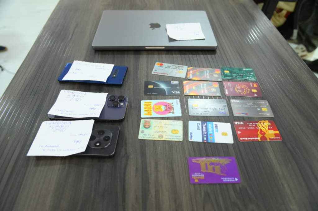విచారణలో అతని వద్ద నుండి మూడు సెల్ ఫోన్లు, ఒక ల్యాప్‌టాప్‌ను , వివిధ బ్యాంకుల డెబిట్ కార్డులు స్వాధీనం చేసుకున్నట్లు తెలిపారు. నిందితుడిపై ఇప్పటికే మాడుగులపల్లి పోలీస్ స్టేషన్ మరియు వరంగల్ పోలీస్ స్టేషన్ పరిధిలో చీటింగ్ కేసులు నమోదై ఉన్నట్లు తెలిపారు.ఈ కేసులో నేరస్థుడిని పట్టుకోవడంలో చాకచక్యంగా వ్యవహరించి ప్రతిభ కనబర్చిన నాంపల్లి సీఐ శ్రీ డి.రాజు, చింతపల్లి ఎస్‌ఐ శ్రీ ఎం.రామ్మూర్తి మరియు చింతపల్లి పోలీస్ సిబ్బందిని జిల్లా ఎస్పీ గారు ప్రత్యేకంగా అభినందించి రివార్డులు ప్రకటించారు.