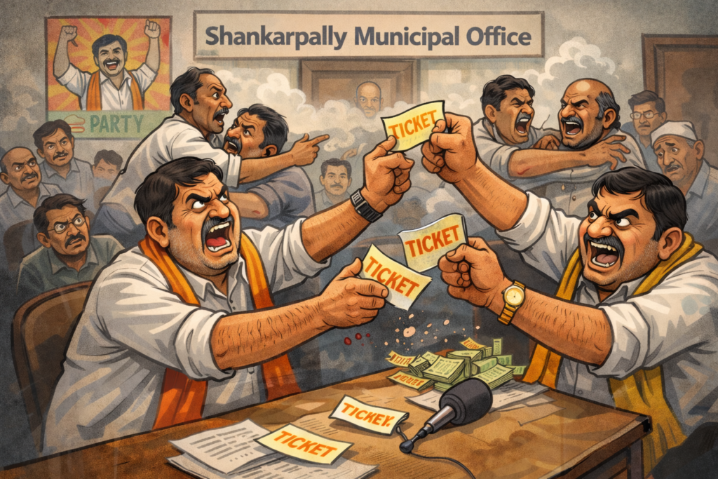 శంకర్పల్లి మున్సిపాలిటీ ఎన్నికల్లో టికెట్ రాజకీయాలు-అసంతృప్తి జ్వాలలపై విశ్లేషణ