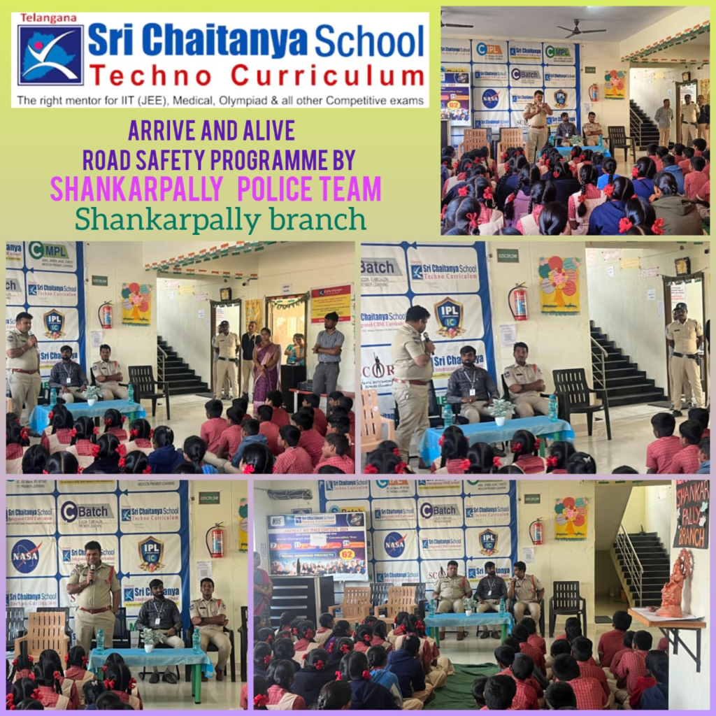 శంకర్పల్లి మండల కేంద్రంలోని శ్రీ చైతన్య స్కూల్ (టెక్నో కరికులం) లో శంకర్పల్లి పోలీస్ స్టేషన్ ఆధ్వర్యంలో ‘అరైవ్ అండ్ అలైవ్’ రోడ్ సేఫ్టీ అవగాహన కార్యక్రమం ఘనంగా నిర్వహించారు.