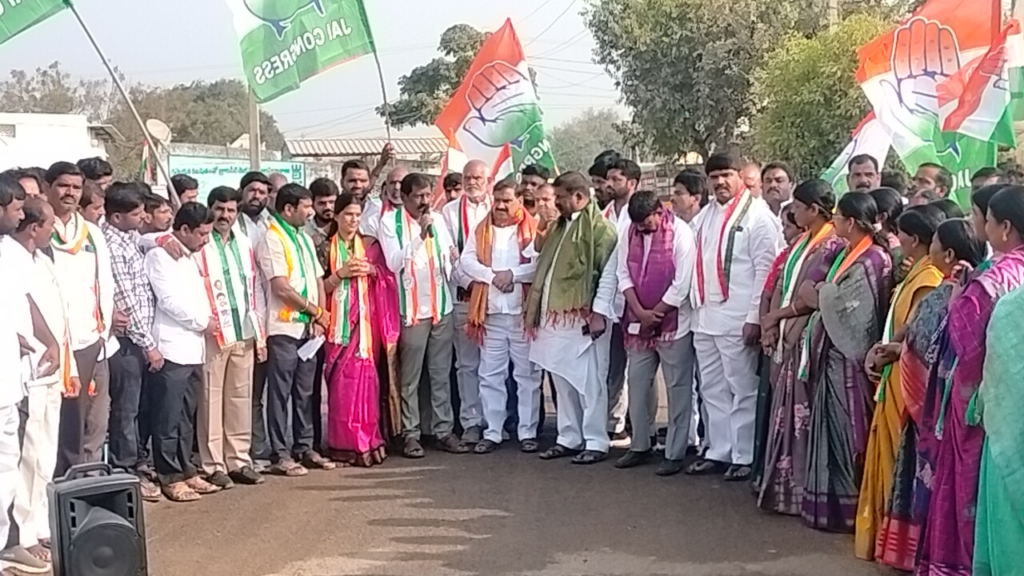 మొయినాబాద్ మున్సిపాలిటీ పరిధిలోని చిన్న షాపూర్ వార్డులో చేవెళ్ల నియోజకవర్గం కాంగ్రెస్ పార్టీ ఇంచార్జి పామేన భీమ్ భరత్ ఆధ్వర్యంలో ఎన్నికల ప్రచారం ముమ్మరంగా కొనసాగింది. శుక్రవారం ఆయన బృందంతో కలిసి పలు వార్డుల్లో ఇంటింటా తిరుగుతూ కాంగ్రెస్ పార్టీ అభ్యర్థుల తరపున ఓట్లు అభ్యర్థించారు. ప్రతి గల్లీలో పర్యటిస్తూ స్థానికుల సమస్యలను అడిగి తెలుసుకుని, కాంగ్రెస్ ప్రభుత్వం అమలు చేస్తున్న సంక్షేమ పథకాలను వివరించారు.ఈ సందర్భంగా ఆయన మాట్లాడుతూ పట్టణాభివృద్ధి కాంగ్రెస్ పార్టీతోనే సాధ్యమని, ప్రజా సమస్యల పరిష్కారానికి నిబద్ధతతో పనిచేసే అభ్యర్థులను ప్రజలు ఎన్నుకోవాలని సూచించారు. చిన్న షాపూర్ వార్డు కాంగ్రెస్ అభ్యర్థి బొక్క మాధవి ‘చేయి’ గుర్తుపై ఓటు వేసి అత్యధిక మెజారిటీతో గెలిపించాలని కోరారు. వార్డులను ఆదర్శంగా అభివృద్ధి చేస్తామని భరోసా ఇచ్చారు.
