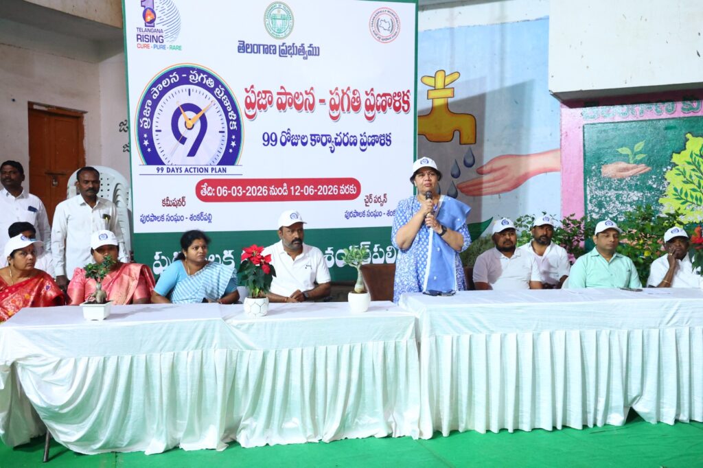 అదేవిధంగా మార్చి 6 నుండి 15వ తేదీ వరకు పరిసరాల పరిశుభ్రత, పెండింగ్ ఫైళ్ల క్లియరెన్స్ మరియు సమస్యల పరిష్కారంపై ప్రత్యేక డ్రైవ్ చేపట్టనున్నట్లు తెలిపారు. రోడ్లపై చెత్త వేయకుండా జాగ్రత్తలు పాటించాలని, తడి చెత్త–పొడి చెత్తను వేరు చేయాలని, ప్లాస్టిక్ వినియోగాన్ని తగ్గించాలని ప్రజలకు సూచించారు. శంకర్పల్లి పట్టణం పారిశుద్ధ్య పరంగా జాతీయ స్థాయిలో గుర్తింపు పొందేలా అందరూ కలిసి పనిచేయాలని పిలుపునిచ్చారు.
