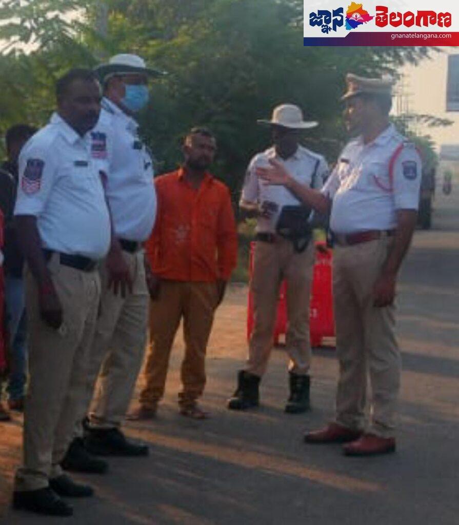 ప్రతి ఒక్కరూ విధిగా ట్రాఫిక్ నిబంధనలు పాటించాలని వాటిని ఉల్లంఘించిన వారిపై భారీ జరిమానా తప్పదని ట్రాఫిక్ సీఐ వెంకటేశం తెలిపారు. శంకర్ పల్లి మండలం మోకిల ప్రధాన రహదారి పక్కన ట్రాఫిక్ నియంత్రణ లో భాగంగా బుధవారం వాహనాల తనిఖీ నిర్వహించారు.ఈ సందర్భంగా ట్రాఫిక్ సీఐ వెంకటేశం మాట్లాడుతూ… ద్విచక్ర వాహనదారులు తప్పనిసరిగా హెల్మెట్, కారు డ్రైవింగ్ చేస్తున్న వారు సీటు బెల్టు ధరించాలన్నారు.సెల్ ఫోన్ మాట్లాడుతూ డ్రైవింగ్ , ట్రిపుల్ రైడింగ్ చేసిన వారు మోటార్ వెహికల్ యాక్ట్ ప్రకారం శిక్షార్హులని అన్నారు, మద్యం సేవించి వాహనాలు నడప రాదని, వాహనాలు నడిపే ప్రతి ఒక్కరూ రోడ్డు నిబంధనలను, ట్రాఫిక్ సూచనలను పాటిస్తూ ట్రాఫిక్ పోలీసు లకు సహకరించాలని కోరారు. వాహనాలపై పెండింగ్ ఉన్న చలాన్లను ఆన్లైన్ ద్వారా చెల్లించవచ్చని అన్నారు. ప్రతి ఒక్కరూ డ్రైవింగ్ లైసెన్స్ కలిగి ఉండాలని సూచించారు. హెడ్ కానిస్టేబుల్ శ్రీశైలం, శ్రీనివాస్, రవి సిబ్బంది ఉన్నారు.