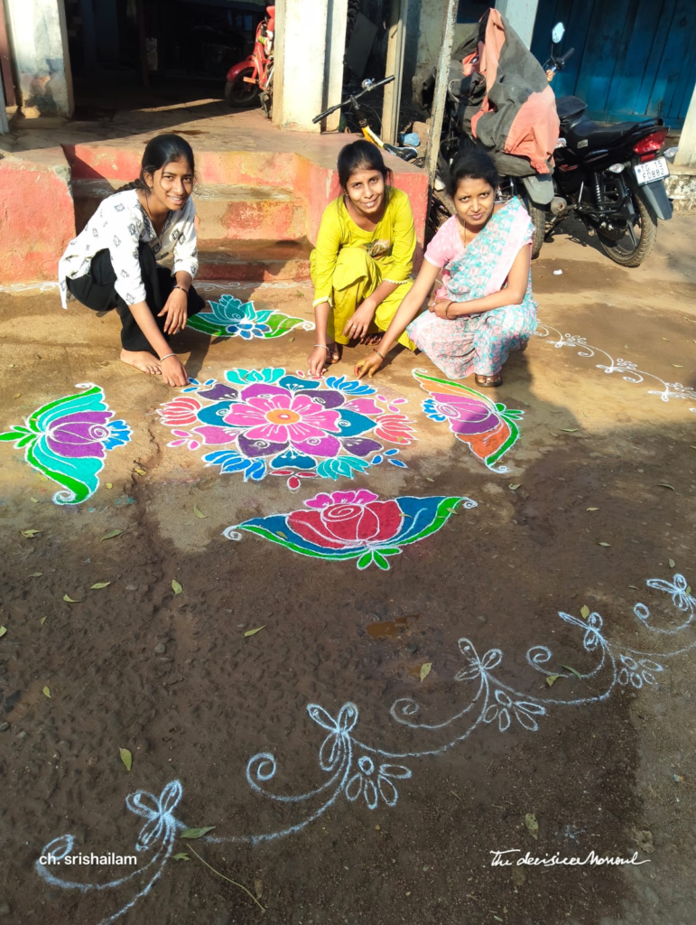 సంక్రాంతి సంప్రదాయాలకు ప్రతీకగా నిలిచే ఈ ముగ్గులు గ్రామానికి ప్రత్యేక ఆకర్షణగా మారి, ప్రతి ఇంటిని పండుగ జరుపుకున్నారు