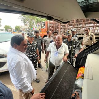 మాజీ మంత్రి వాహనాన్ని తనిఖీ చేసిన చెక్ పోస్ట్ సిబ్బంది
