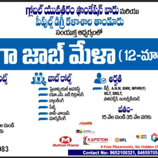 తాండూర్ లో మెగా జాబ్ మేళా జ్ఞాన తెలంగాణ,తాండూర్ :నిరుద్యోగ యువతీ యువకులకు గొప్ప శుభవార్త .గ్లోబల్ యువతరం ఫౌండేషన్ వారి ఆధ్వర్యంలో పీపుల్స్ డిగ్రీ కళాశాల వారితో కలిసి నిర్వహిస్తున్న జాబ్ మేళాఈ నెల 12 మార్చి 2025 న ఈ మెగా జాబ్ మేళా...